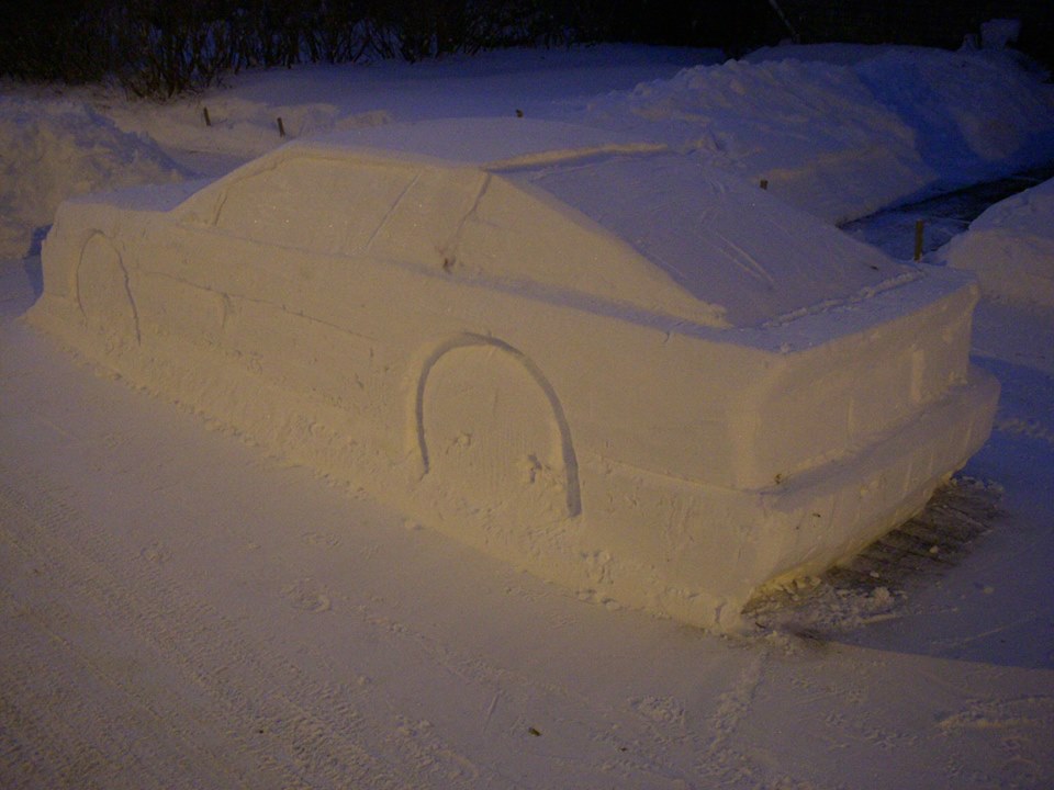 That snow-sculpture of a car, cunningly placed for maximum police confusion, was the work of 33-year-old machinist and artist who goes by Simpon Laprise. The whole thing was just a massive pile of snow that was deposited in front of Laprise’s home.