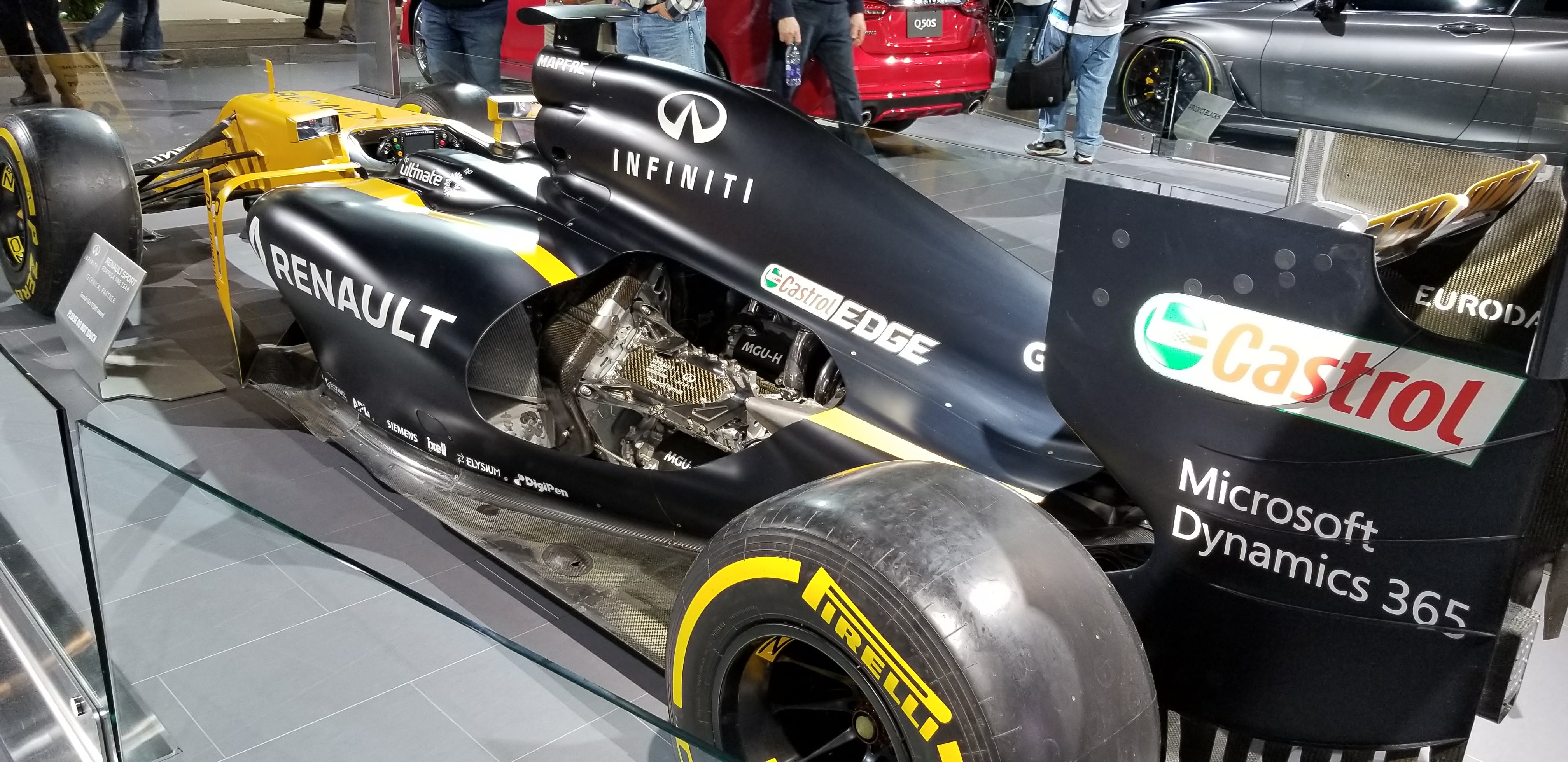 At the Nissan booth, the Renault R.S.16 complete with Jolyon Palmer’s name on the side.