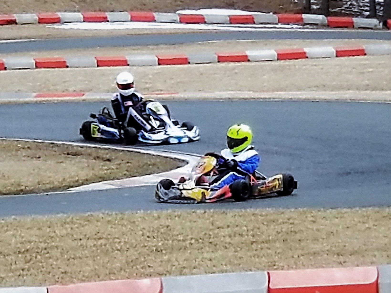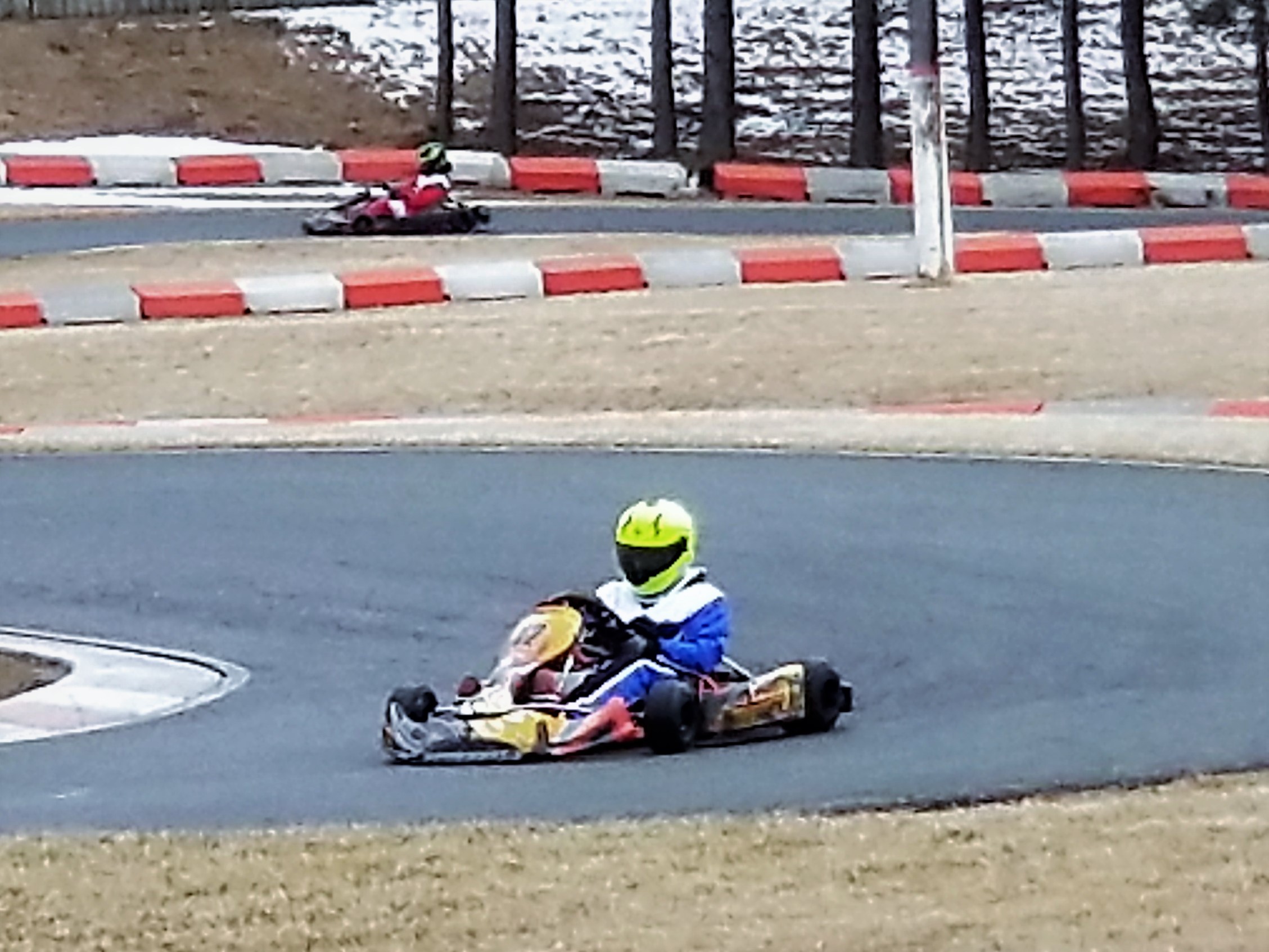 Intrepid kart #12 waits in the garage, its kart stand frozen to the ground. The garage still has evidence of last years occupants, and their dreams of racing glory. Rookie orientation day is going ahead as planned, and Big Daniel DiLeo is preaching the gospel of karting to a new bunch of racers. As the rookies take to the track, Daniel watches in disbelief as no less than 4 karts spin off track on Lap 1.