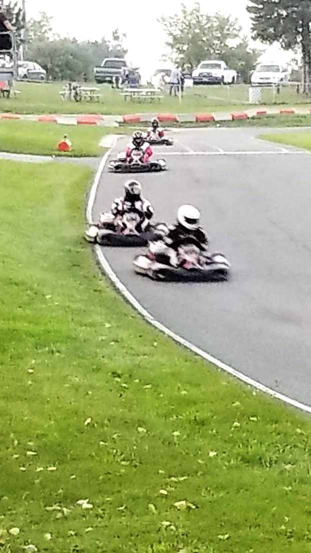 Chris stayed with the second place kart, and thought about a move for position, but had to settle for the bottom step of the podium. Chris is a well liked driver around the paddock, but his poor luck and lack of skill make hos semi-annual podiums rare moments to cherish.