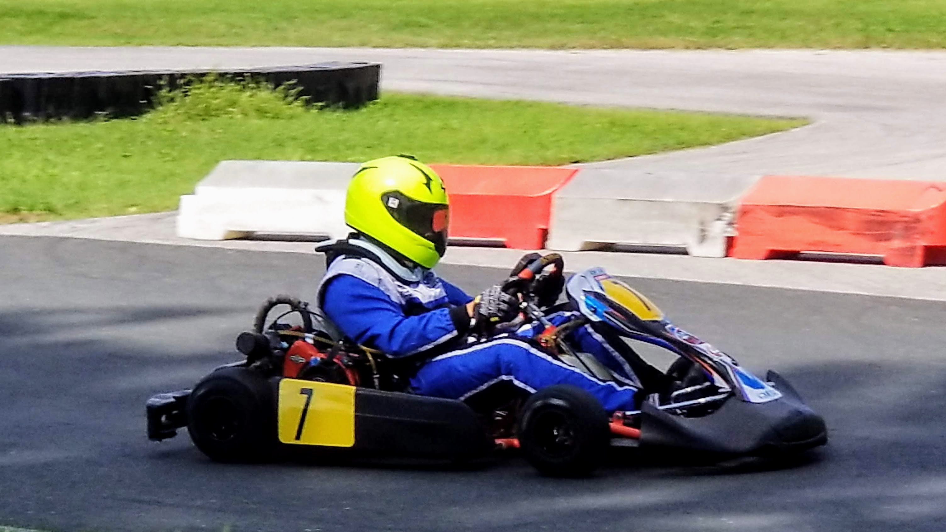We made it back to the paddock, and while I had a drink, Daniel got ready to practice in his #7 club racing kart.