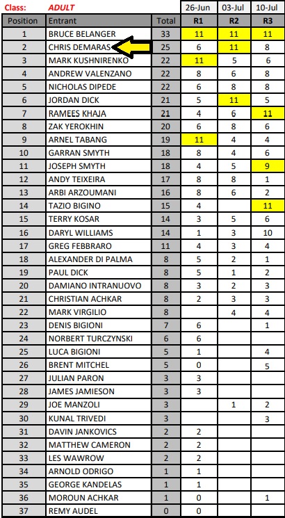 Demaras qualified 3rd, lost a position early in the race, then made two overtakes to take the silver medal on the podium.