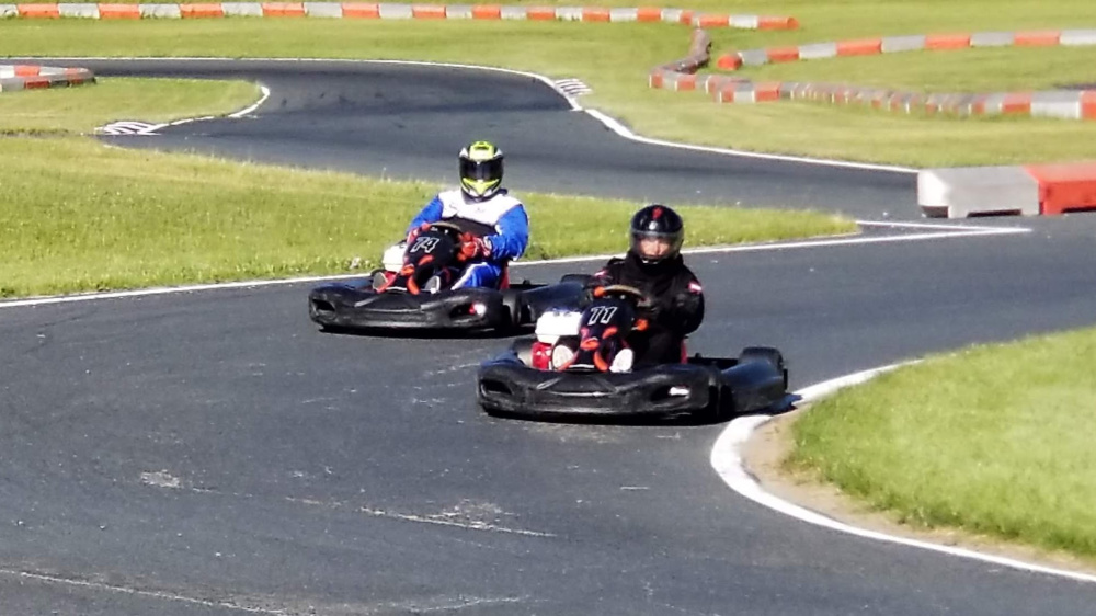 This week’s track configuration at Goodwood added in the ‘bus-stop’ chicane on the front straight. While it is a tricky corner, Chris was lucky enough to receive private coaching from ROK racer Matte Ferrari. Demaras had a lot to be happy about!