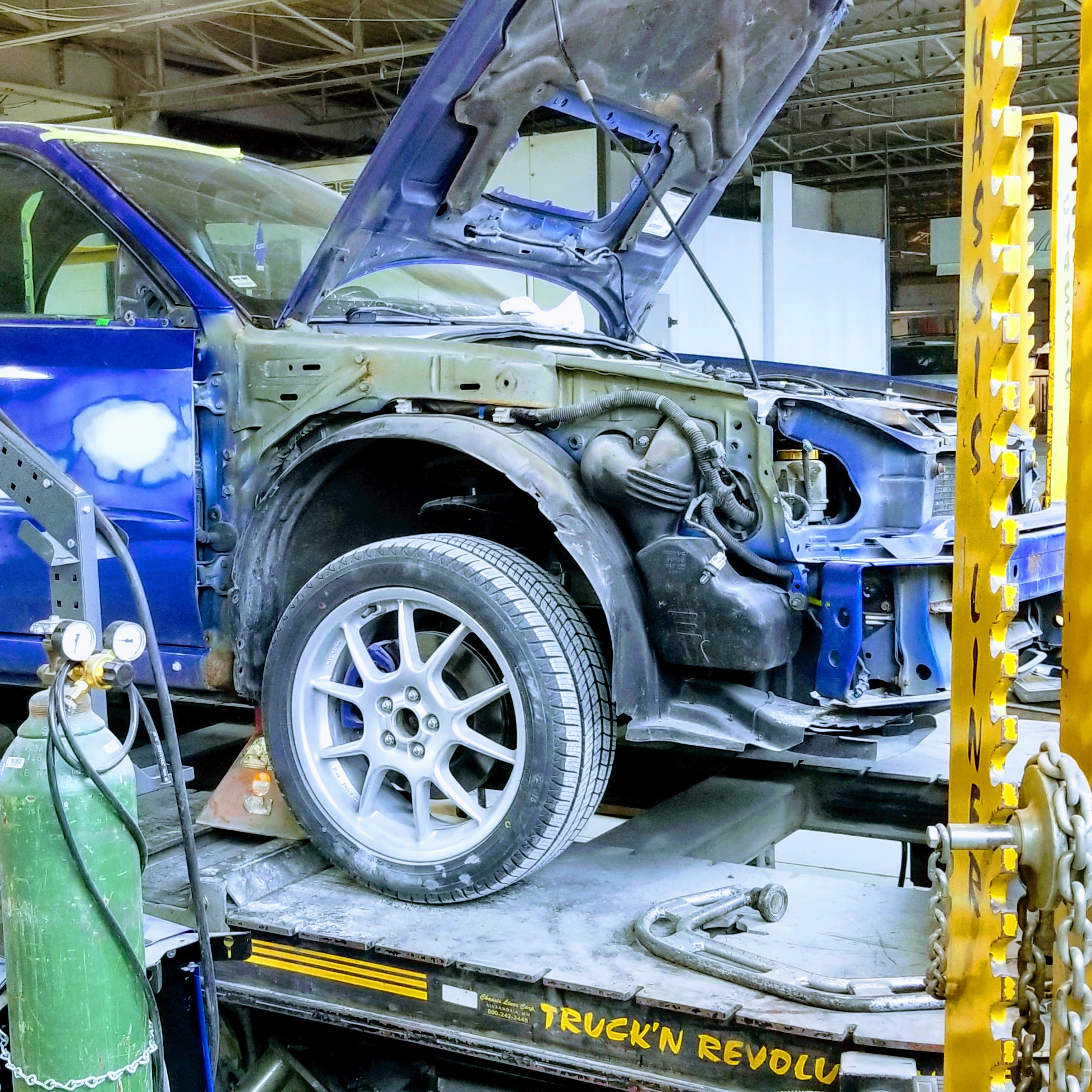 A never-installed OEM fender for the front right corner. Replacement JDM bumpers with aerodynamic enhancements. Subie-Savers patch panels for the rear fender arches and rocker panels. That’s really only half the story. As mentioned in a previous post, there isn’t a straight panel on this car. It’s had a rough life.