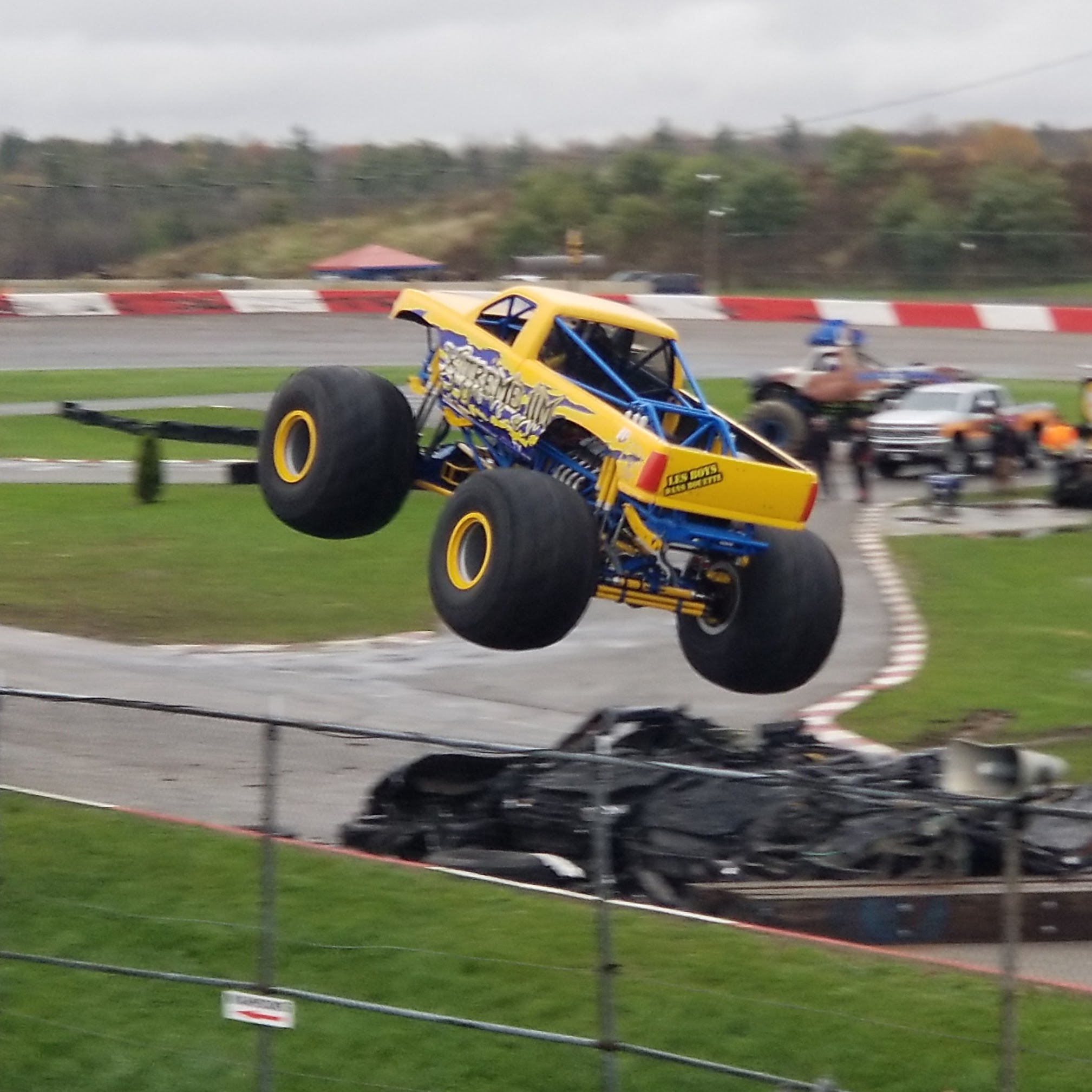The big yellow truck looked like totally modern machinery. Double nitrogen-charged shocks on each corner allowed all 10,000 lbs. of truck to land huge jumps.