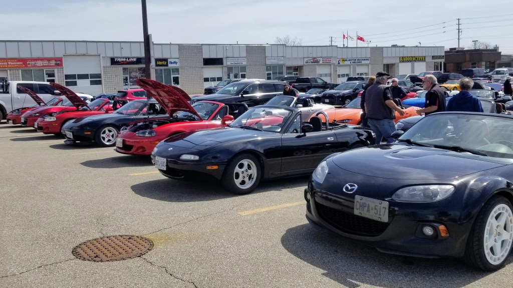 Turning into Dave’s driveway off Harvester Rd the parking lot was rammed. Somewhere between 50 to 100 Miatas (from original first-gen NAs to late model NDs) took up every parking spot. R-Theory Motorsports was having a customer appreciation BBQ at Dave’s!