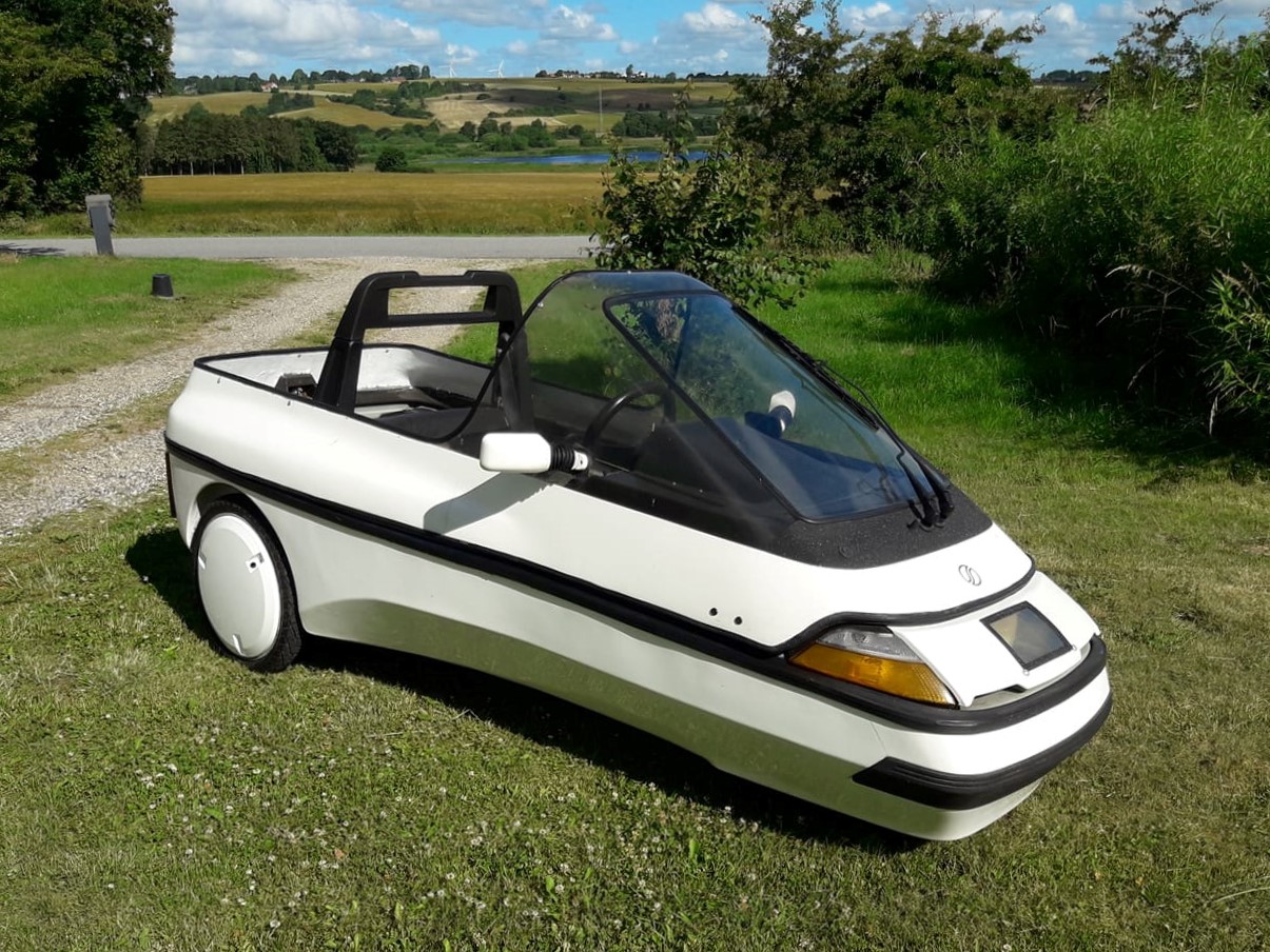 A couple days ago, I was in the parking lot of a Silvan hardware store in Grenaa, Denmark, picking up items for the summer-house. Pulling out of the parking spot, we saw this retro-futuristic looking vehicle. It was bigger than a motorcycle, but had a full body, like a car. The styling emended me of and early 90’s vehicles like the Pontiac Trans-Sport minivan and the Italdesign Aztec, Aspid and Asgard prototypes. The driver got in front of me and slowly accelerated into traffic.
