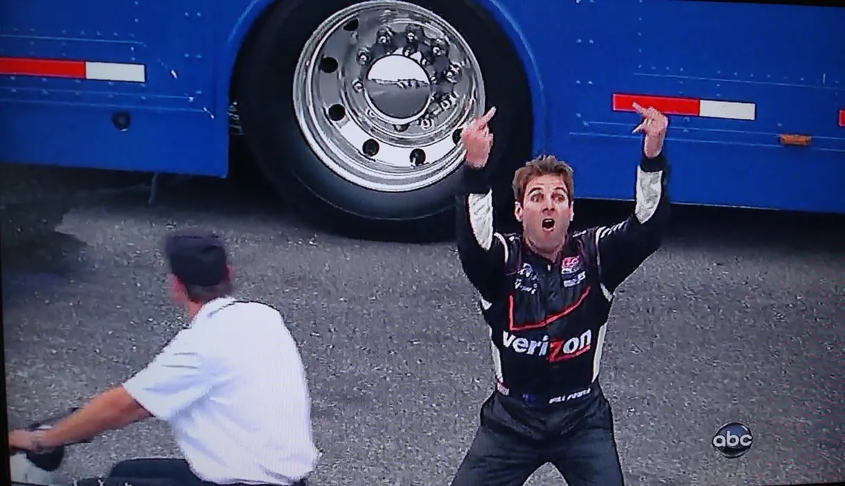 Back in 2011, Power had a freak-out rarely seen in professional motorsports. During an oval track at Loudon, New Hampshire, IndyCar officials decided to throw the green flag despite rain falling. The result was a spin by Danica Patrick, which took out Power, and triggered a 10-car pileup. After climbing out of his wrecked car unscathed, Power was furious that his championship run was ruined.