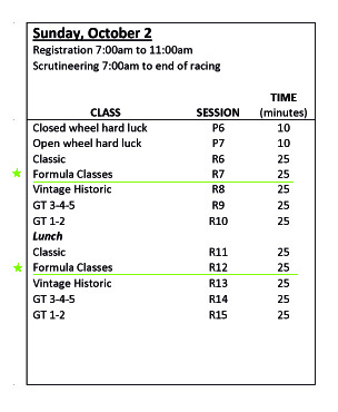 Sunday October 2nd, 2022 – Provisional Schedule