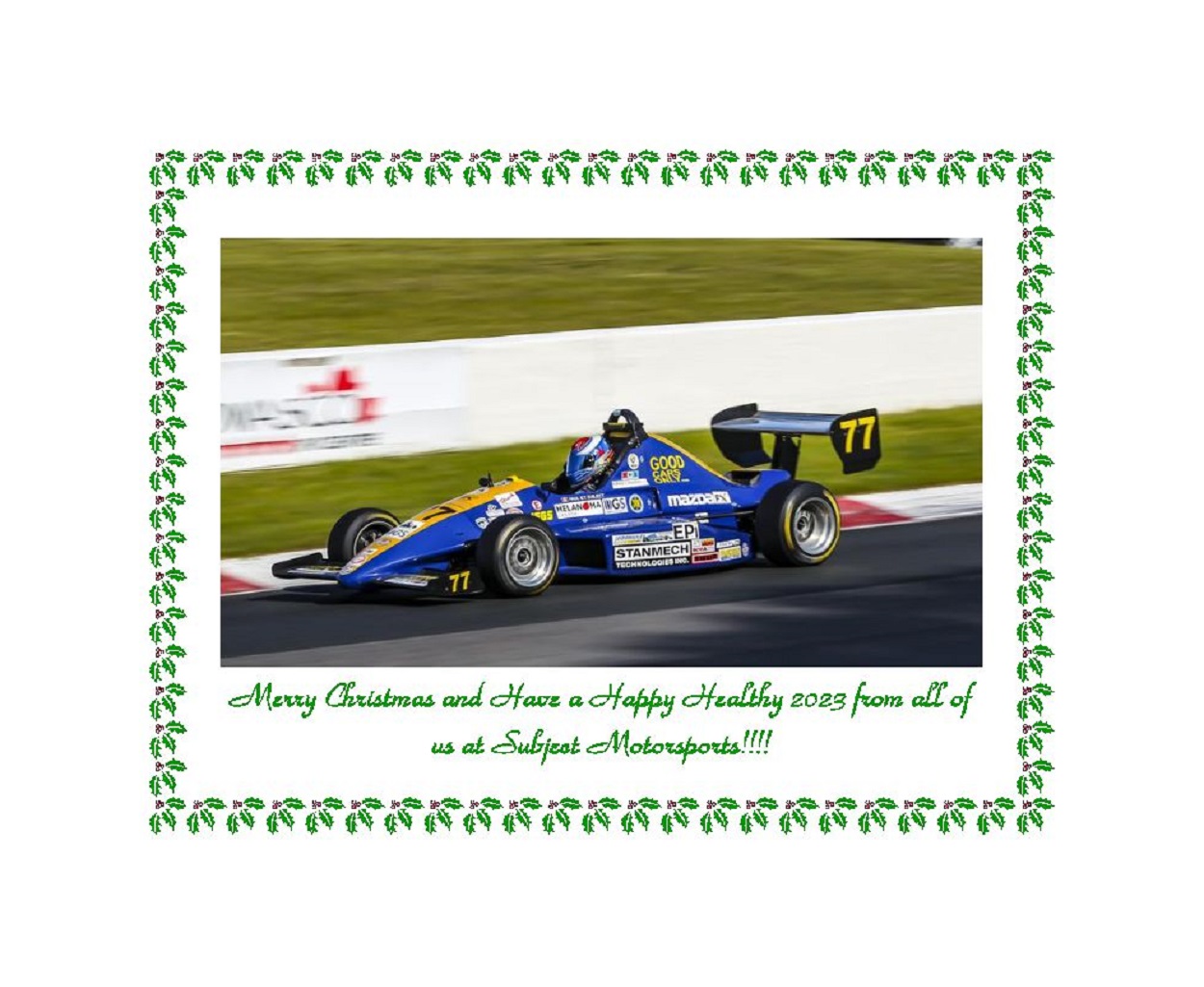 Here’s a Christmas card we received from Paul Subject, driver of the No. 77 Formula Mazda. Paul is an HPDE Certified Instructor, Formula Libre Champion, VARAC Club Champion and Skip Barber 2.0 L Formula Car Grand Master Champion. More than just those credentials, our friend Paul is a good guy who mentored Daniel in the No. 12 during his rookie season.