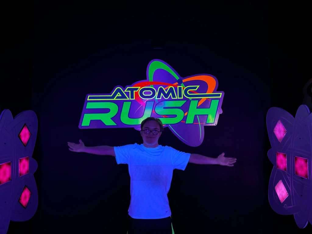 We encountered a couple of rough spots. He decided to do a roller-coaster simulation and I went with him. The employee told us to put our hands in an x shape above our heads if we needed the ride to stop.