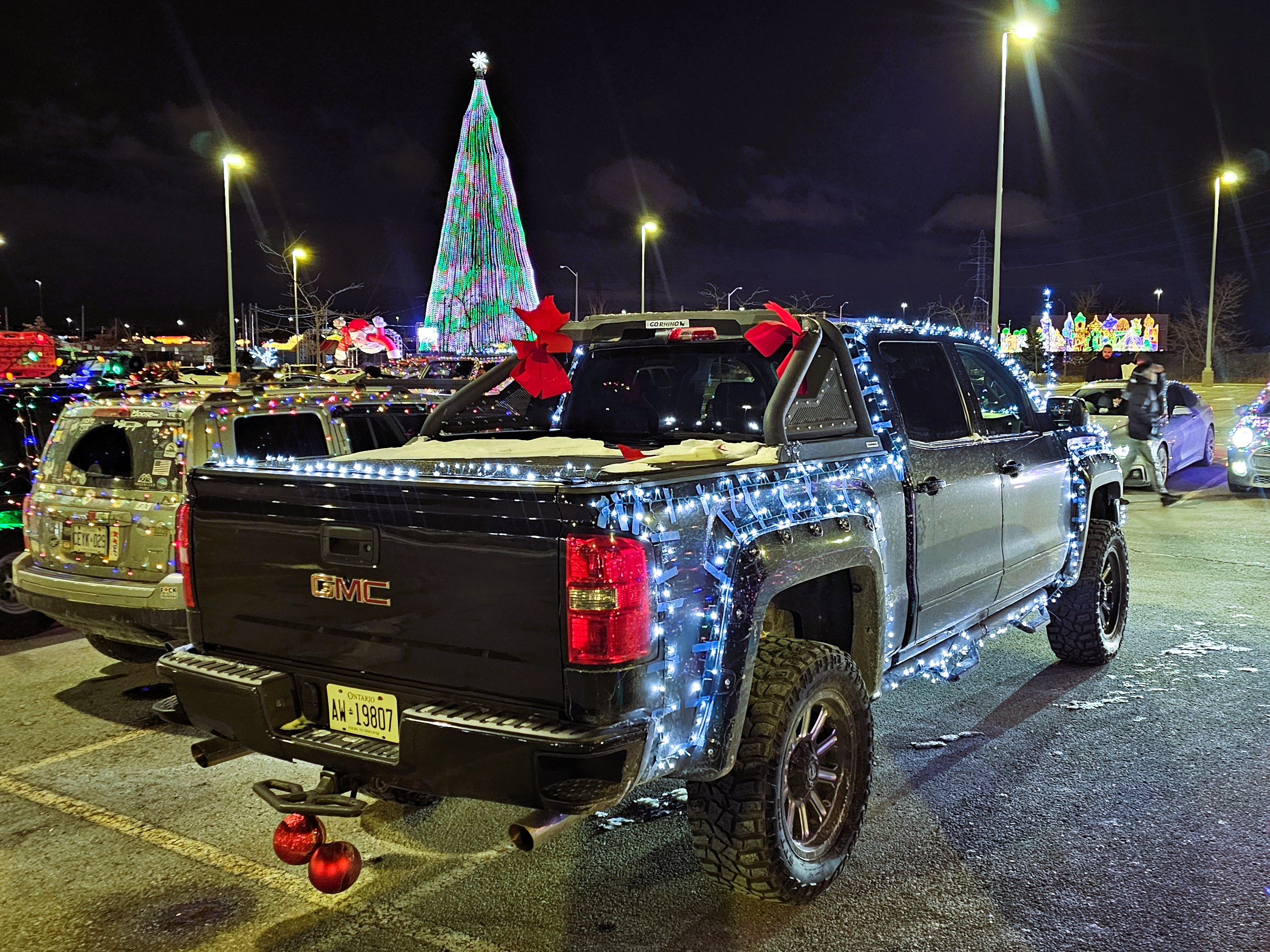 Toronto, Canada, Demaras all the way. Oh what fun it is to ride in a Christmas-lighted truck, hey! (to the tune of Jingle Bells hehe)