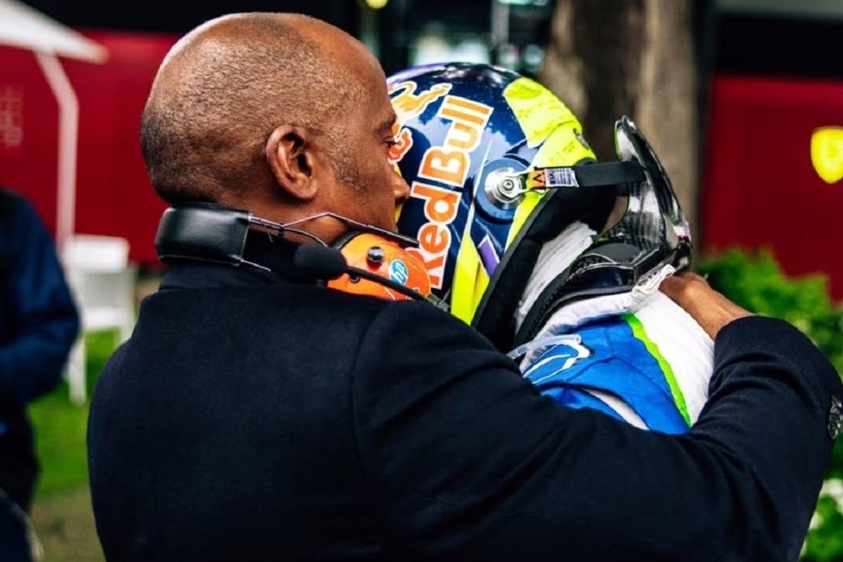Funny thing is Anthony is not Isack’s father. No, Anthony Hamilton is the father of another F1 driver (not even a teammate) but he just couldn’t stand to see this young guy all alone. So, Anthony stepped out the back door of the Ferrari team garage, and intercepted crestfallen Isack to give him a hug, some support and words of encouragement. Anthony walked Isack back to the Racing Bulls team garage, with his arm around the young man’s shoulder.