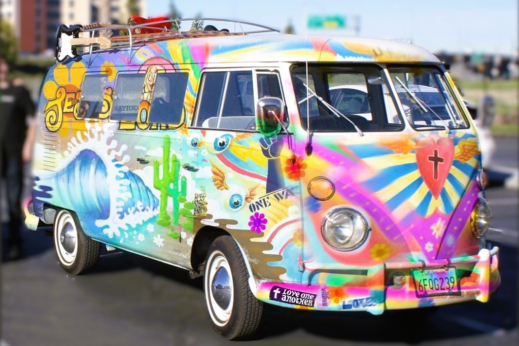The modest opposite of a chrome-plated, gas-guzzling American SUV is an old hippie van; a vintage VW bus. I can picture Jesus at the wheel of a VW that he bought used years ago, yet it miraculously keeps on running. Mechanically simple and spacious, the VW could carry 12 disciples with ease. But the flower-power generation really co-opted imagery of a bearded, long-hair in a van.