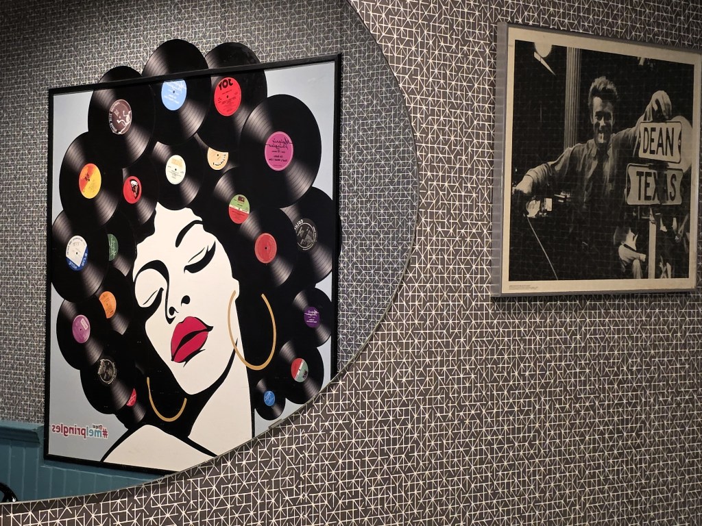A nice touch at ‘Melanie Pringles‘ is the strong focus on music. Each table has a mini-jukebox filled with classics, and there’s music from the golden age of rock and roll playing throughout the restaurant. Plus there’s some totally creative vinyl album artwork on the walls that stands out, as it’s beyond the usual portraits of Marilyn Monroe.