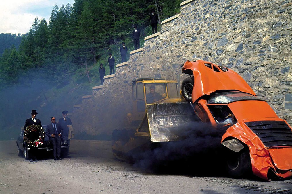 The opening scene is absolute automotive cinema. Crocker’s criminal associate Roger Beckerman is driving an orange 1968 Lamborghini Miura through the Italian Alps as “On Days Like These” croons over the opening credits. Beckerman has devised a plan to steal $4 million in gold bullion from an armored car in Italy.